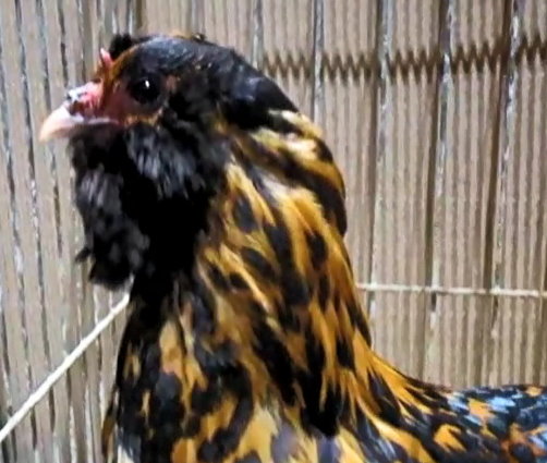 Netherlands Owlbeards gold spangled, Barbu Hollandais doré pailleté
