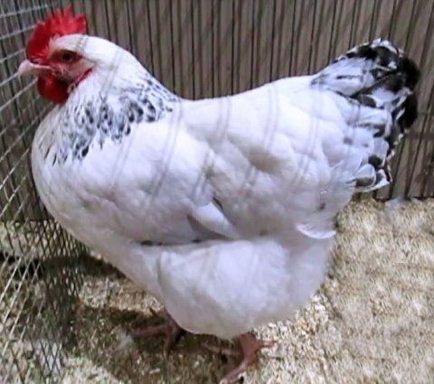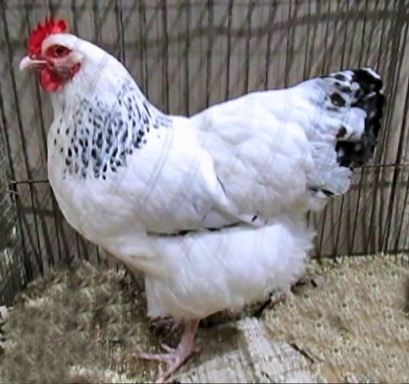 Niederrheiner (Poules du Bas-Rhin) blanc herminé coucou ,