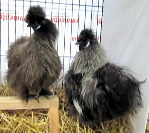 zilverpatrijs met baard, Dværg-Silkehøns sølvgrå og Broget, Jedwabiste