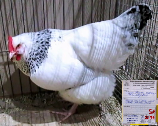 Niederrheiner weiß-schwarzcolumbia-gesperbert ,
